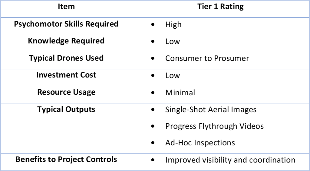 Table 1 below characterizes the typical Tier 1 drone project control usage.