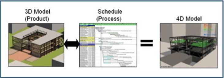 4D scheduling is the “visualization of the construction schedule”, which is achieved by linking a 3D digital model with time or schedule-related information.